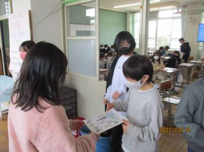 以前作ったメッセージカードを6年生に届けました。6年生は,すぐに開けて読んでくれていました。がんばって作ってよかったですね。