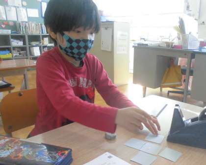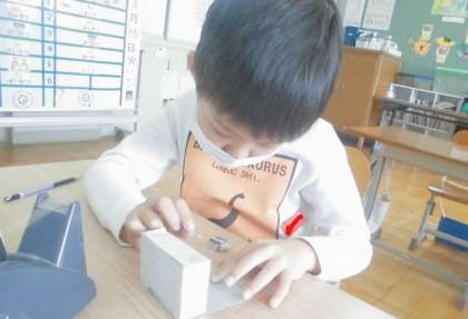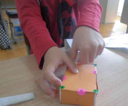 今日は,工作用紙を使って,長方形や正方形の面を書き,つなげて箱の形にしました。長さをまちがえて,ピタッとならないことに気づき,作り直して箱にすることができました。