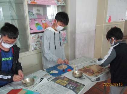絵の具で色をつけて,ニスを塗りました。完成した伝言板をお家でぜひ使ってほしいです。