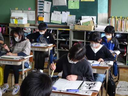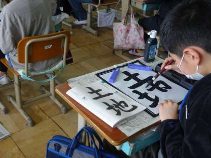 4年生最後の書写は,「土地」と書きました。横画や縦画,はらい,はねといった今まで学んできた筆運びに気をつけながら丁寧に書くことができました!