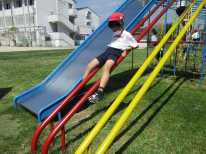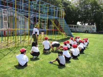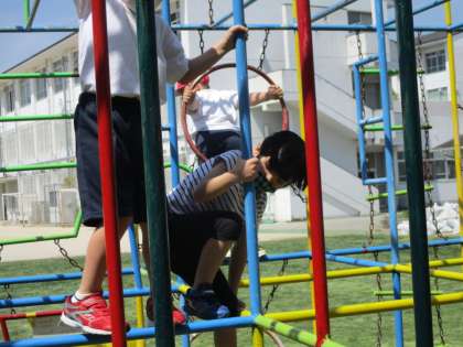 3年生児童は,交流学習で運動場にあるゆうぐの使い方を確認しました。