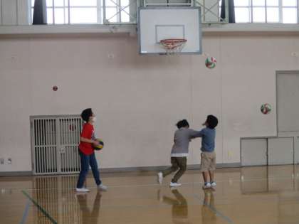 今回の自立活動では,体育館で走ったりボールを投げたりしました。