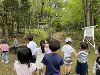今日は,運動場に出て,どうぶつ村やいのちの森に行きました。