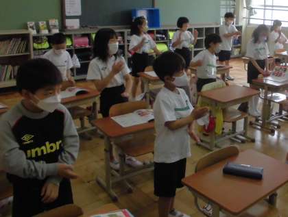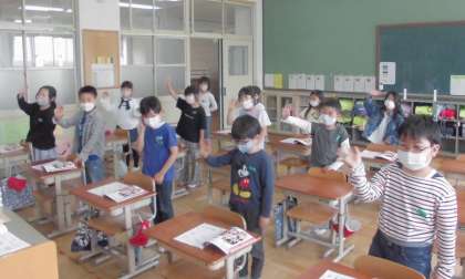 どんな言葉なのかをたしかめたあと,明るい声で,あいさつを交えて歌いました。