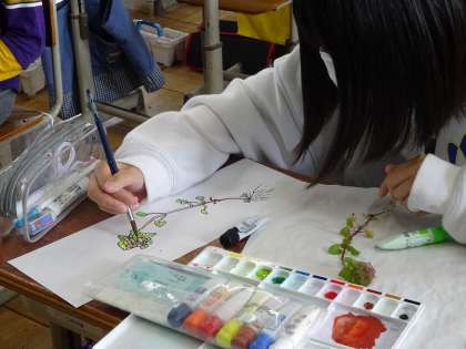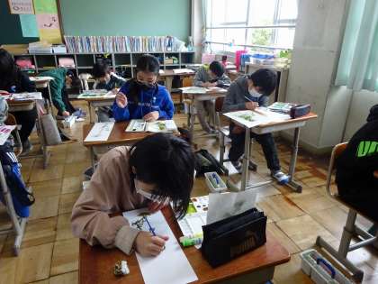 図工の時間に,野草を採ってきて絵を描きました。茎や根,葉の様子をよく見て描きました。