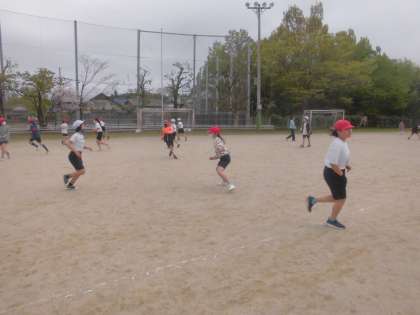 体ほぐしの運動で,様々な鬼ごっこをしました。