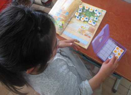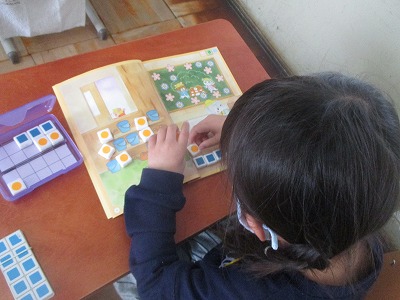教科書の絵の上に数図ブロックを置いて調べました。