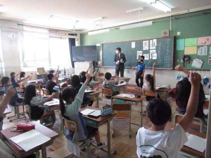 漢字の組み合わせを考えて,「へん」や「つくり」以外にもたくさんの名前のついた部分があることについて学習しました。「かんむり」や「にょう」などがつく漢字をたくさんみんなで探しました。
