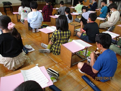 音楽室での音楽の学習の様子です。短調と長調の違いを学習したり,新しいリコーダーの曲を練習しました。ソのシャープの音の練習もしました。最後に,ビリーヴを歌い,美しい歌声が響いていました。