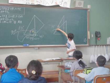 前に出てきて,黒板に書きながら説明することに挑戦しています。