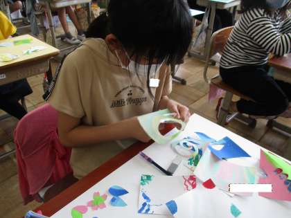 貼り合わせた間にも心の移り変わりが分かるように,色付けしている人もいました。それぞれがのびのびと思いを表現していて素敵でした。