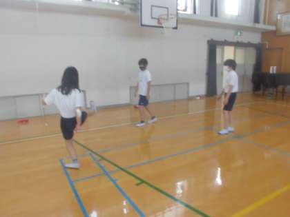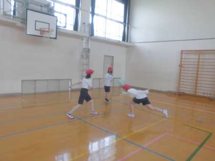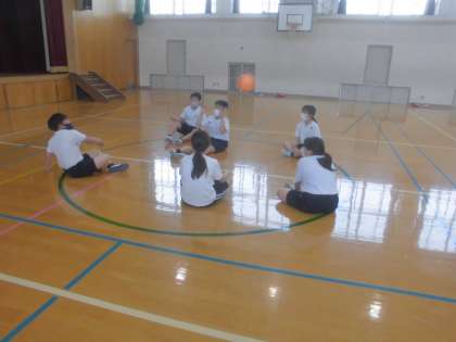 体ほぐしの運動をしました。風船を使って,風船バレーや風船サッカーをしました。グループで楽しく活動をしていました。