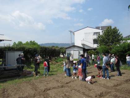 とってもいい天気のもとで,1回目の花と野菜を育てようの会がありました。今年は21の家庭の申し込みがあり,たくさんの方に参加していただきました。野呂先生のお話を聞き,これから,どのような花や野菜を育てていくのか楽しみですね。