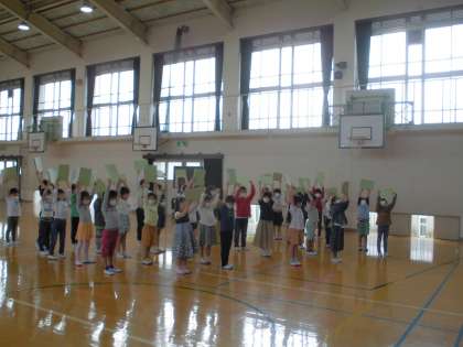 1年生をむかえる会に向けて,初めて学年全員で練習をしました。