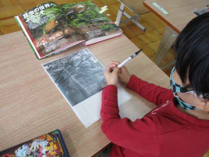 今日は写し紙を使って,図鑑の昆虫を写しました。