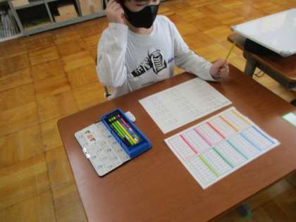 3くみ教室の算数では,多くの子どもたちがわり算に挑戦中!