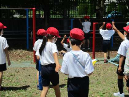 3年生は体育で鉄棒を学習しています。