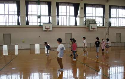 1年生を迎える会の練習の後に1組対2組でドッジボールをしました。2つのボールが飛んでくるので,逃げる方も大変です。投げたり,受けたり,2つのボールを集めてから同時に投げたり・・・といろいろなナイスプレイがありました。