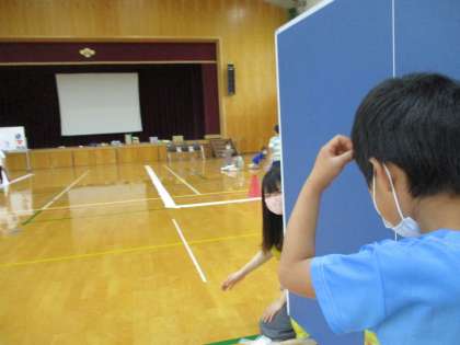 実践では,体育館内で用意された横断歩道を安全に歩く体験をしました。