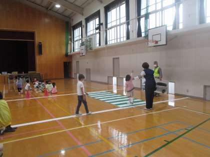 体育館を道路に見立てて実際に歩いてみました。