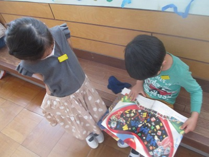 新幹線通りのベンチに座って,迷路の本や探し物の本など,
