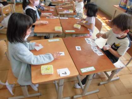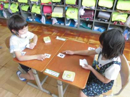 数字カードを使って,2人組で数の大きさ比べをしました。