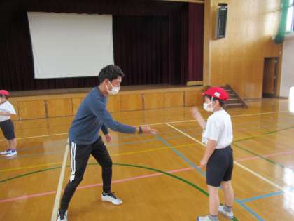 朝自己紹介のあと,体育の授業を一緒にしました。