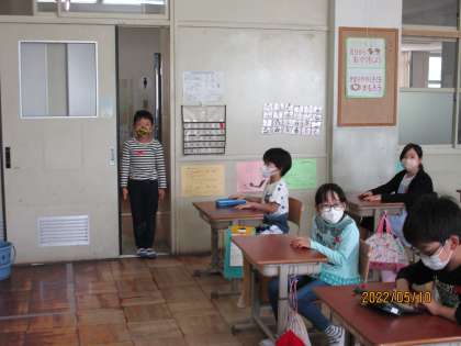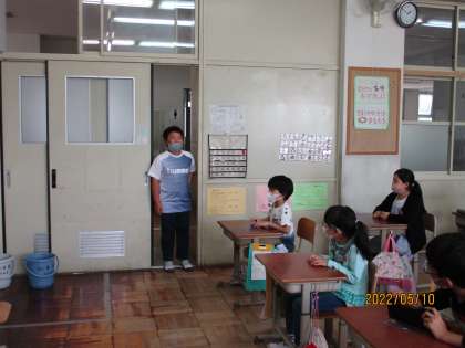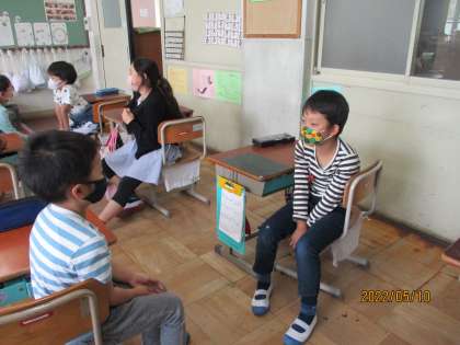 ○○先生を呼ぶバージョン・鍵を借りるバージョンなど,子どもたちなりに工夫をして話していました。例文にある言葉を読むのではなく,自然に話せている姿は,さすが3年生でした1