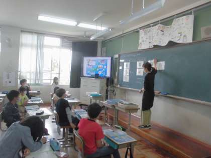 日本地図のイラストを見ながら,晴れや曇り,雨など天気の言い方を学習しました。