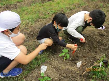 畑へ苗を植える際は,植える手順をしっかり確認してから大切に丁寧に植えることができました。