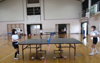 今週から部活動が始まりました。5年生はペアになり,台で打合いをしたり,ゲームをしたりしました。
