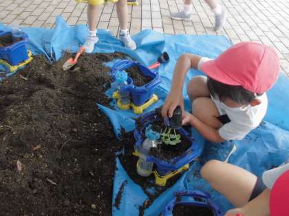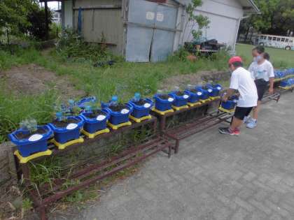 生活の学習では,観察した野菜の苗の植えかえをしました。