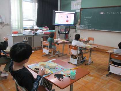 給食カレンダーの映像を見て旬な野菜について知り,今日の給食は栄養満点だということに気づきました。