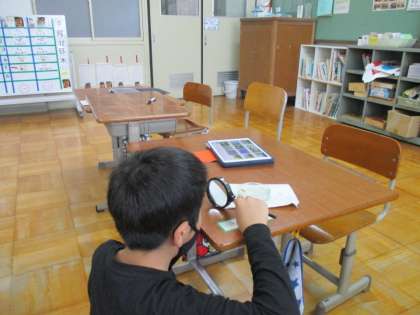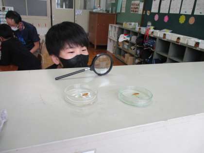 今日の理科では,クラスで飼っているメダカの性別を実際に調べる活動を行いました。