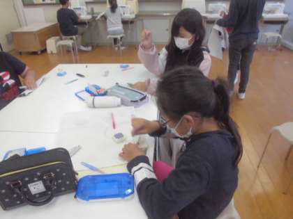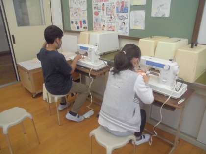 ミシンを使ってナップザックを作っています。修学旅行まであと少し。