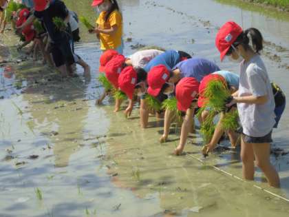 植え終わった後は,水路の冷たい水で足を洗い,達成感に満ちた表情で学校に戻りました。
