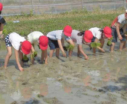 初めて上里小の田んぼを見た子どもたちは,とても嬉しそうでわくわくしていました。
