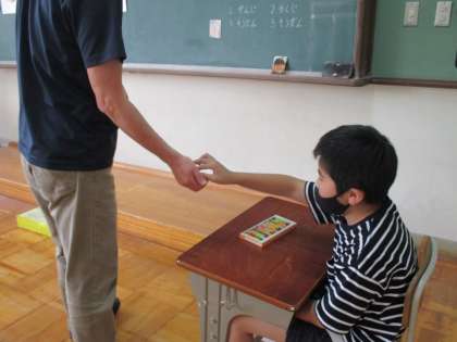 今日はクレヨン屋さんになって,いろんな色を渡しました。