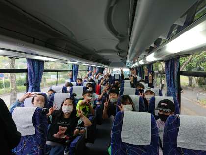 出発式も終わり、バスで出発します!
