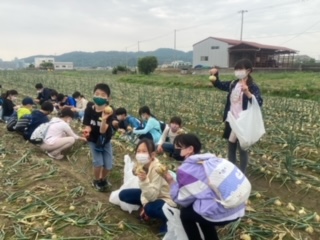 できるだけ大きな玉ねぎを見つけて、収穫。