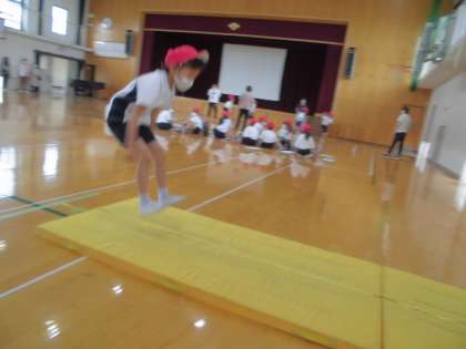 立ち幅跳びでは,どれだけ遠くにジャンプできるのかに挑戦しました。