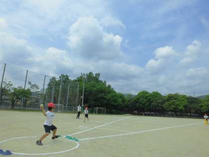ソフトボール投げでは,どこまで遠くに投げられるかに挑戦しました。
