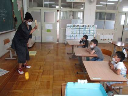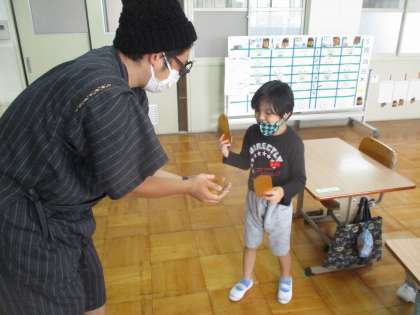 上手におむすびを転がしたり,踊りながら小槌を振ったりすることができました。