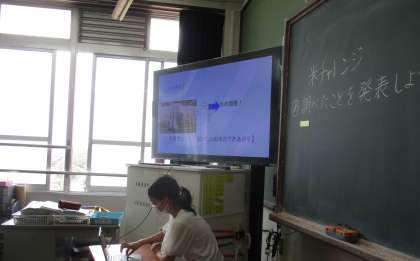 お米作りやお米について調べたことをパワーポイントを使って少し発表しました。お米の病気や害虫,水の管理や農機具について簡単に発表していました。昔の農業と現代の農業との違いなどに興味をもった子もいました。