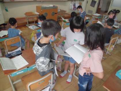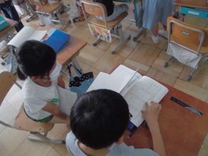 国語の「同じぶぶんをもつかん字」では,教科書の後ろの漢字ページを見ながら,