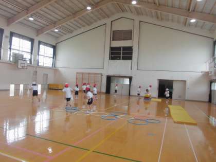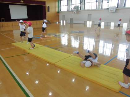 まねっこあそびでは,リーダーの人の動きをまねして,いろいろな動きを楽しみました。