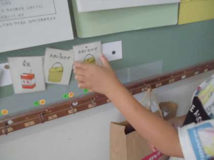 そのあと,手や体を使って10cmぐらいをたしかめ,教室の中の10cmぐらいのものさがしをしました。
