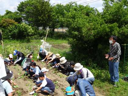 本日は花と野菜を育てようの会の活動があり,今日はサツマイモの苗を植えました。