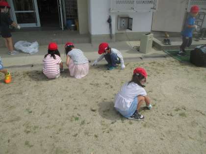 落ち葉や石を集めたり,雑草を抜いたりしていました。