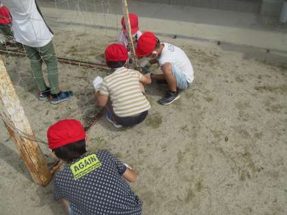青空が広がるお天気の中,子どもたちは一生懸命,
